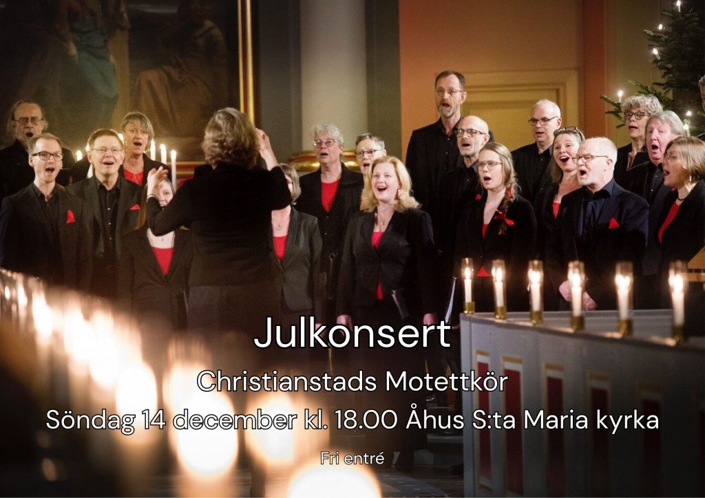Christianstads Motettkör under ledning av Lena Ekman Frisk. I 2025 Ă„rs julkonsert kommer tvĂ„ nya kompositioner in i programmet: Steven Hansens hĂ€rligt svĂ€ngiga Fröjda, dig, du Kristi brud och Sara Kollberg Clarkes Staffansvisa frĂ„n Ăstergötland, Ă€ven den rytmisk och glad. Givetvis fĂ„r publiken ocksĂ„ njuta av nĂ„gra stĂ€mningsfulla, Ă€lskade klassiker sĂ„som Jul, jul, strĂ„lande jul och Förunderligt och mĂ€rkligt.