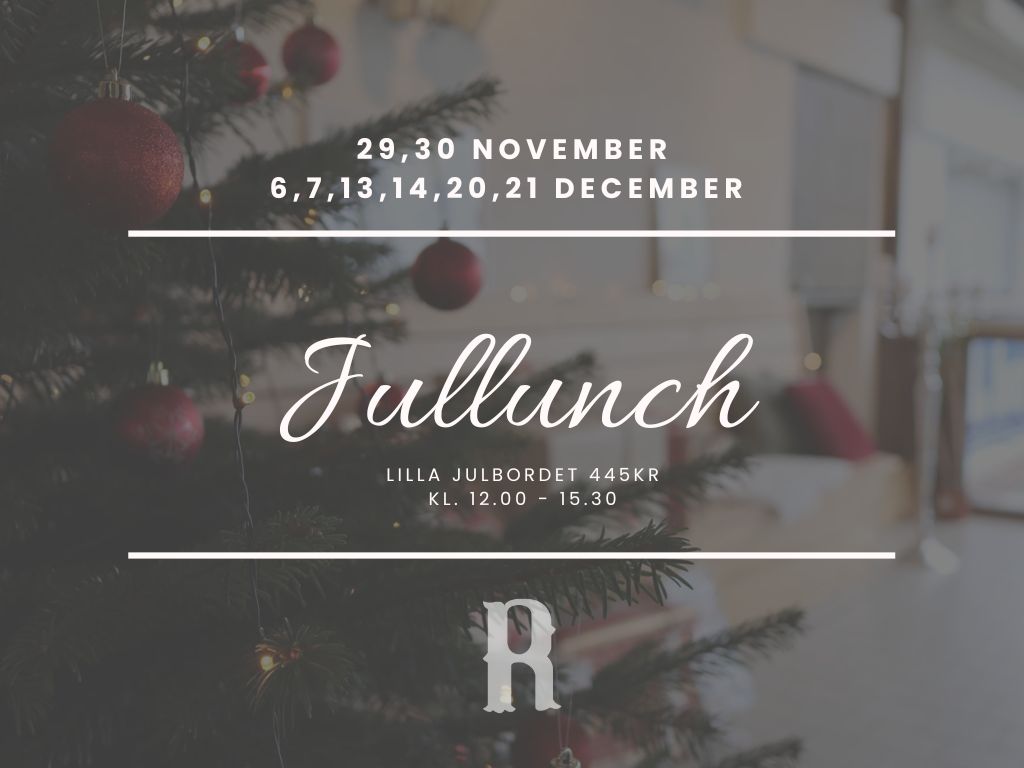 Varje lördag och söndag i adventstid serverar vi på Rökeriet jullunch på buffé. Du kommer hitta många av julens godsaker på detta bord som avrundas med ett ordentligt gottebord. Det bästa från sillbordet, utvalda godsaker av det kallskurna, rökt fisk från vårt eget rökeri och favoriterna från det varma bordet. Vi tar emot bokningarna mellan kl. 12.00-14.30, buffén dukas undan kl. 15.30 och restaurangen stänger kl. 16.30.