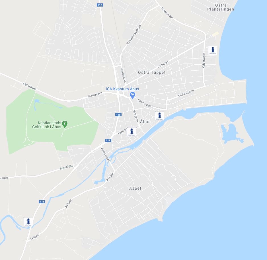 För att du som besökare sĂ„ enkelt som möjligt ska fĂ„ den information och hjĂ€lp du behöver har vi utökat vĂ„r service med sĂ„ kallade Info Places. PĂ„ dessa platser hittar du turistbroschyrer, kartor samt kan fĂ„ svar pĂ„ enklare turistfrĂ„gor. Du kĂ€nner igen platserna genom det blĂ„-vita Info Place mĂ€rket med Kristianstad kommuns logga. Infoplaces finns pĂ„ bland annat Hotell Ă