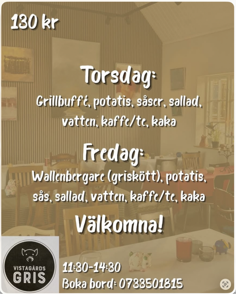 Dagens lunch på Vistagårds gris (to-fr) v 5
