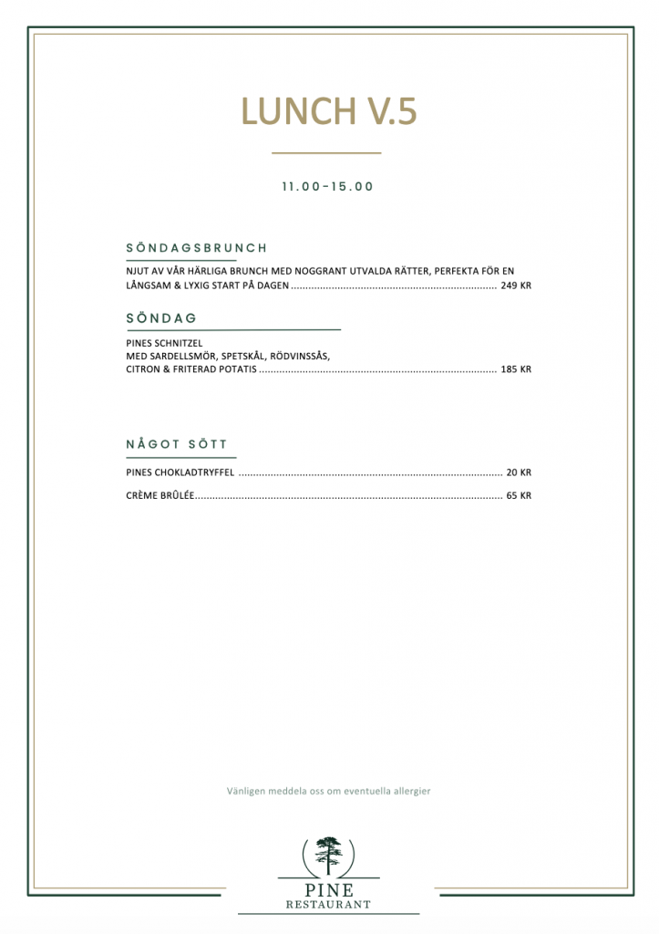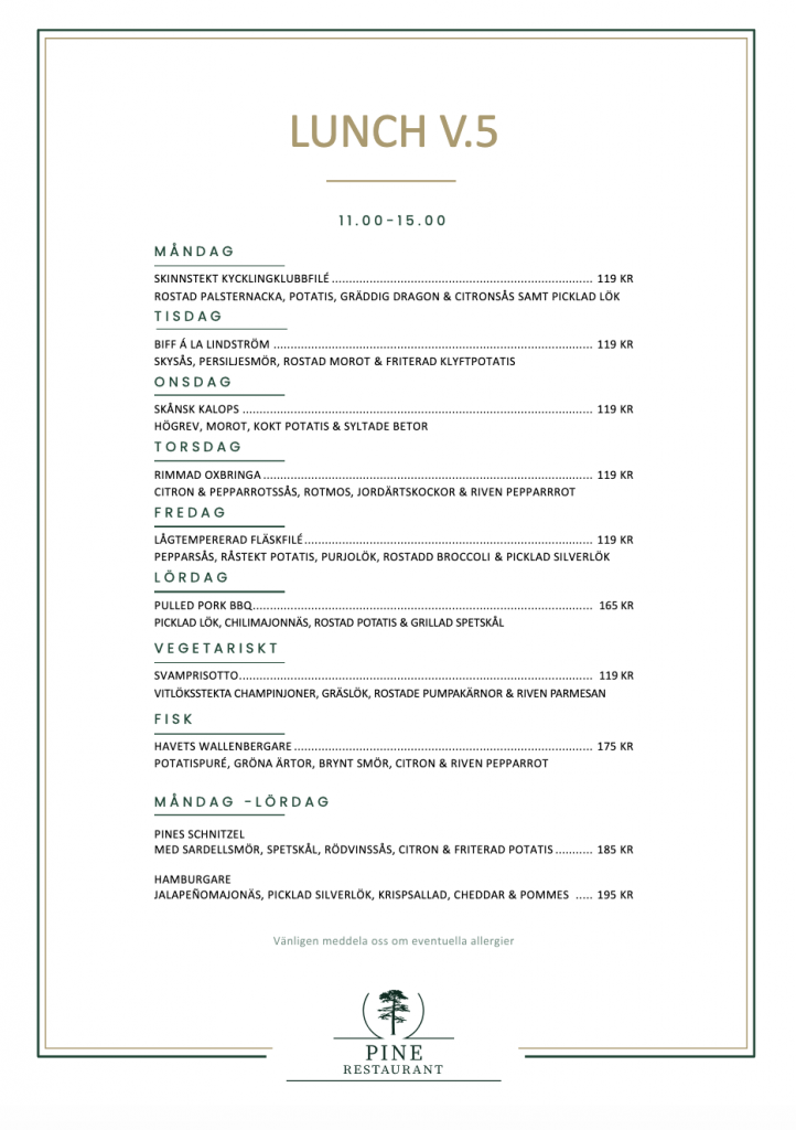 Dagens lunch på PINE (Kristianstad Golfklubb och Destination) må-sö vecka 5