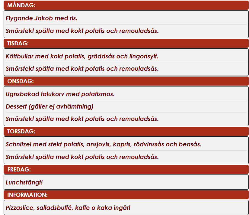 Till dagens lunch ingår alltid en fräsch salladsbuffé, kaffe & kaka.
